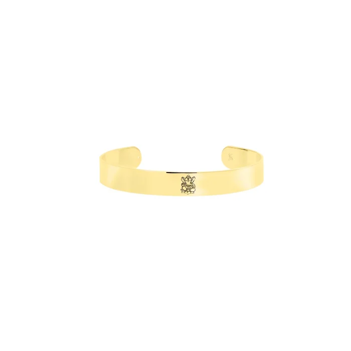Ganesha detailed cuff bracelet with 24K micron gold plated black enamel on brass