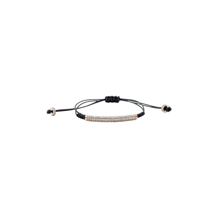 The length of the rope bracelet, designed with a rose gold-plated zircon stone spacer on brass and a black parachute rope, can be adjusted between 14 - 20 cm.