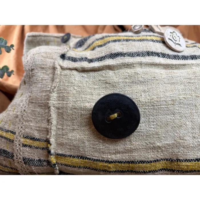 Product: Handwoven Natural-dye Fabric Large Handmade Bag With Ceramic Accessories - Linen Lining & Lace Detail