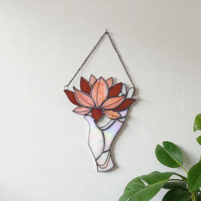 Product: Stained Glass Pink Lotus Hand