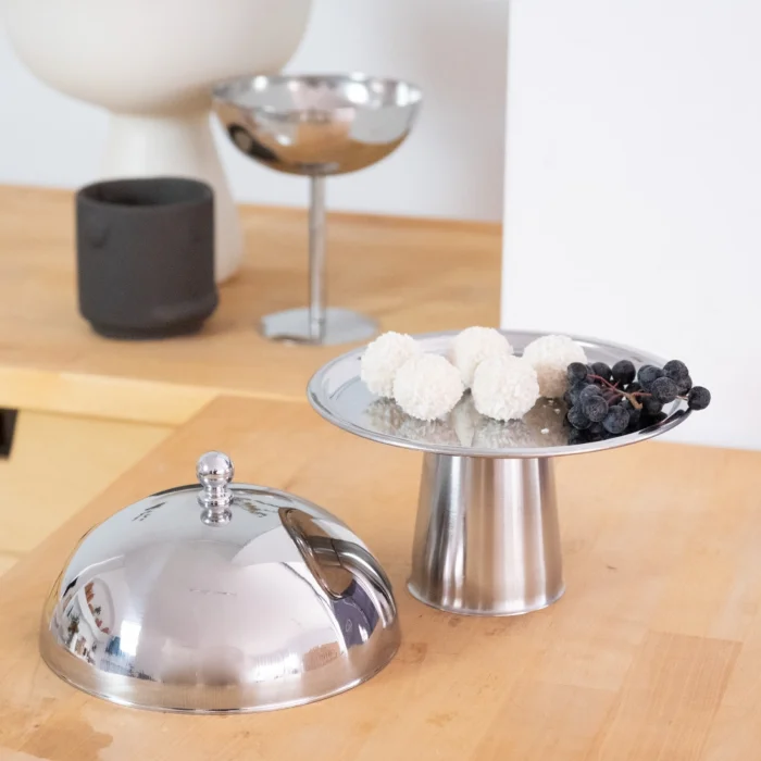Professional Kitchen Presentation Set – Steel Dessert Cake Fruit Presentation Stand 16 cm & Metal Legs 18 cm