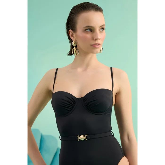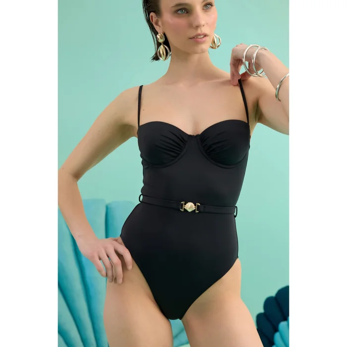 Product: Seanora Black Altin Deniz Kabuğu Aksesuarli Kemerli Balenli Mayo