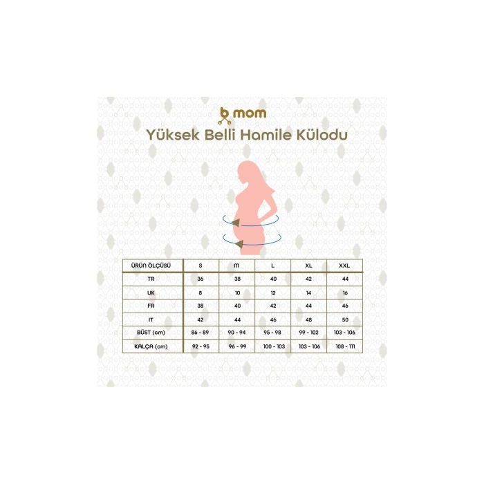 Product Description:Bmom High Waist Maternity and Postpartum Panties: The First Choice of Stylish Mothers! Keep your health and comfort at the forefront while maintaining your style. Prepared with Gezenbebe's unique design approach, the BMOM series makes you feel comfortable and maintains your elegance throughout your pregnancy. Highlights:UNIQUE BMOM SIGNATURE: These panties are more than just a functional Maternity and Postpartum Panties, they are also a reflection of fashion with Bmom's unique pattern. UNIQUE DESIGN: With its structure that gently wraps around your abdomen, it offers superior comfort during your pregnancy. UNIQUE COMFORT: It adds comfort in your movements by providing additional support to your growing belly. TUMMY BALLS: Thanks to its high waist structure, spend your pregnancy period more comfortably and freely. BREATHABLE TEXTURE: The breathable cotton fabric offers unmatched softness and relief for your skin. ULTRA-SOFT LUXURY FABRIC: Its cottony texture that grips your body makes you feel good all day long. LONG-TERM USE: It is designed for pregnancy, postpartum and breastfeeding periods. Technical Specifications:Sizes: Small, Medium, Large, X-LargeColors: Grey, Black, MinkFabric: 93% cotton, 7% lycraEnjoy comfort and elegance with BMOM at every step in your pregnancy and motherhood adventure. Bmom isn't just a pair of panties for you; This is the best friend of your special period.