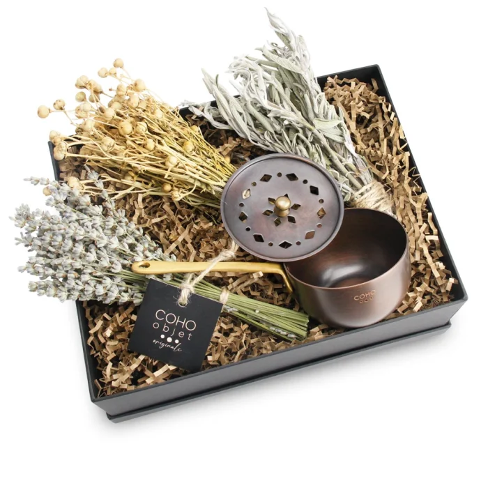 Antique Copper Incence Burner & Peganum & Sage & Lavender Hediye Seti