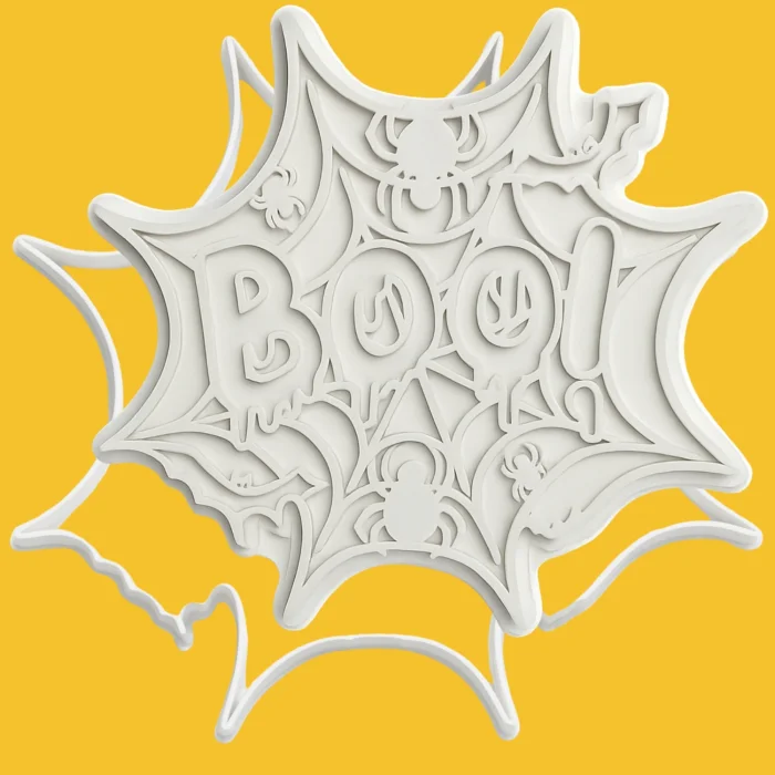 Product: Boo Spider Web With Bats Cookie Cutter & Embosser - 2 Piece Pla Fondant & Clay Cutter