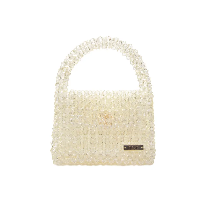 Handmade beaded handbag. Standing beaded handbag. With handle. Height x Width x Depth 18 x 13 x 7 cm Cream color MATERIAL 100% acrylic