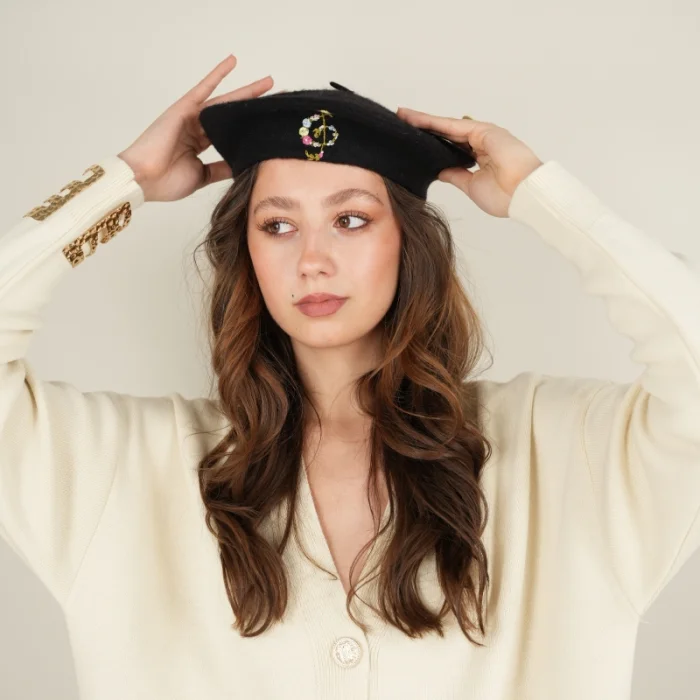 Product: French Beret With Treble Clef Embroidery