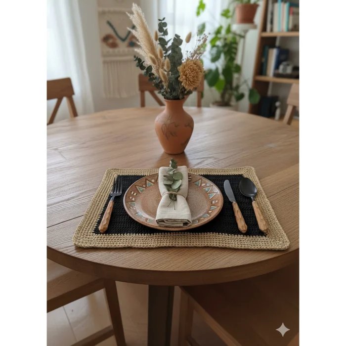 Eco-Friendly and Durable: Produced using 100% sustainable raffia. It is lightweight, durable, and easy to clean, making it suitable for everyday use. The hand-knitted design ensures that each piece is unique and handmade, adding a personal touch to your table décor.