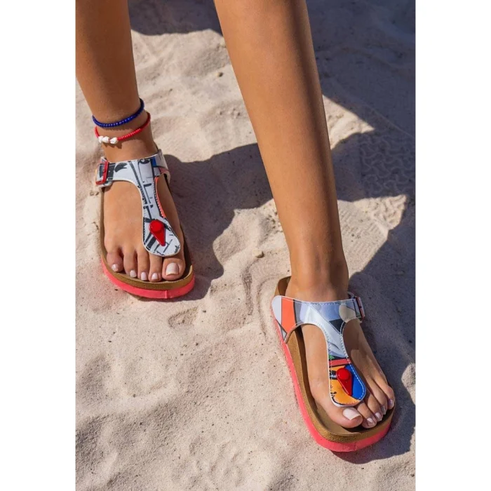 Product: Women Vegan Leather Gray Slippers - Cubic Faces Design