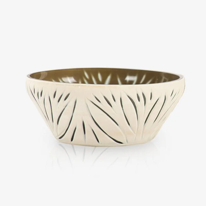 Care: Care for your accessories by dust in regularly with a soft cloth, clean by using a dry or slightly damp soft cloth follow by polishing with a dry soft cloth. Do not use commercial polished or waxes as they can damage finishes. You may wash them with water and dry immediately with a soft cloth. Do not leave water in your metal or painted glass accessories as it can cause lacquers and paints to lift. If there is a need for water for fresh flowers use plastic or glass container or bottle inside the metal vase or bowl to protect the surface.