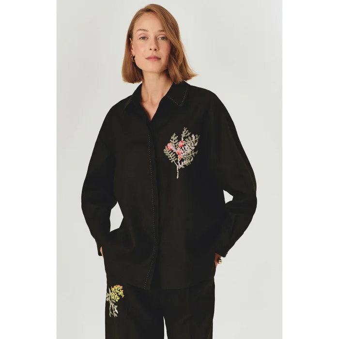 Combining minimalist elegance with hand craftsmanship, the Embroidered Detailed Comfortable Fit Pure Linen Black Shirt is one of the most special pieces of timeless style. Breathable with its 100% natural linen texture and offering comfort all day long with its lightweight structure, this shirt makes a difference with its special embroidery details. While it provides freedom of movement thanks to its comfortable cut, it adapts to every combination with its classic black color.