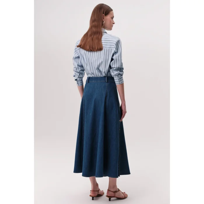 High Waist Snap Detailed Pocket Zippered Regular Denim Indigo Skirt is a product that combines classic elegance with modern details. Suitable to be one of the important pieces of your wardrobe, this skirt is designed with the timeless shade of indigo blue and the durability of denim fabric. It is a suitable option for all seasons and most occasions. The high waist cut elegantly hugs the body lines, while the regular fit provides comfortable wear all day long. This design stands out with its attention to detail. Its zippered front offers both a stylish look and ease of use. The snap details and pockets on it add a functional dimension to the skirt and also become a complementary part of your style. You can create a comfortable combination with a t-shirt and sneakers for daily use, or you can show off your elegance at special events with a stylish blouse and high heels. Indigo color easily matches with tops and accessories in different colors, offering a wide range of combinations. The characteristic texture and durability of denim fabric help this skirt maintain its new appearance for many years. This skirt, which will help you feel confident and stylish with every step, is designed for fashion-forward and stylish women. It is an ideal choice for those looking for both comfort and elegance together. With this piece you will add to your wardrobe, you can create different style combinations and choose it in various environments. Product Details: - Fabric: Denim - Waist Type: High Waist - Cut: Regular - Closure: Zippered - Details: Snap and Pocket Details - Color: Indigo Blue