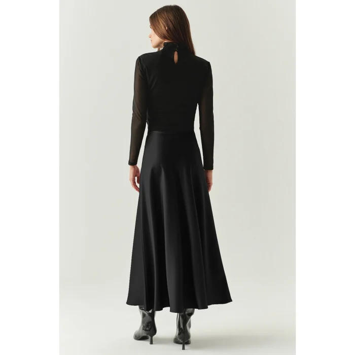 This midi skirt, which draws an elegant line with its soft flowing fabric and high waist cut, is easily worn with its side zipper; Thanks to its simple form, it accompanies an evening invitation with a silk blouse and a sunny weekend breakfast with a basic t-shirt and sandals.