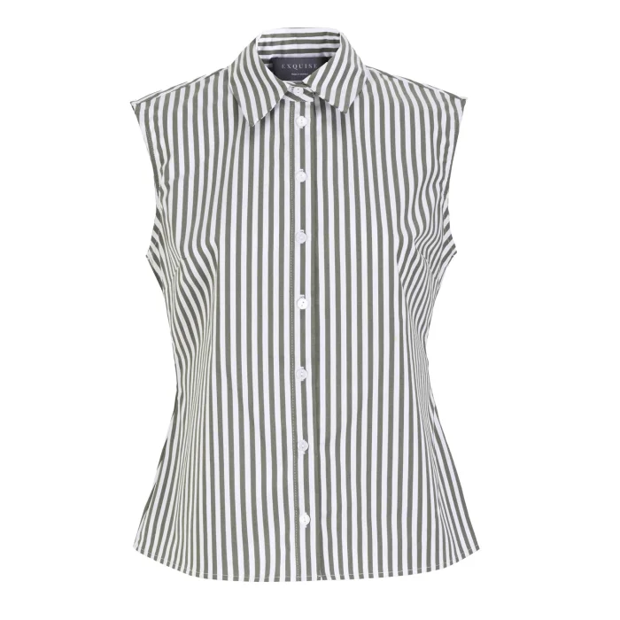 Stripe Patterned Regular Cotton Sleeveless Shirt