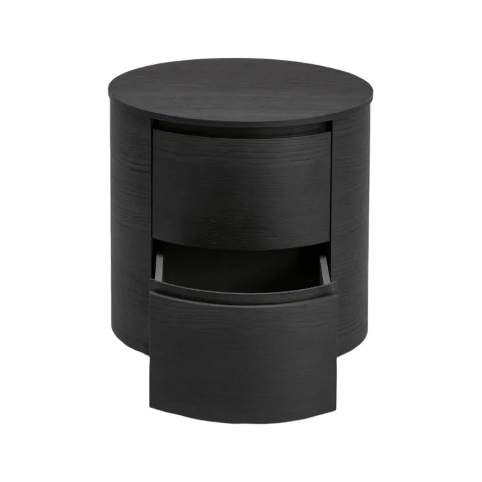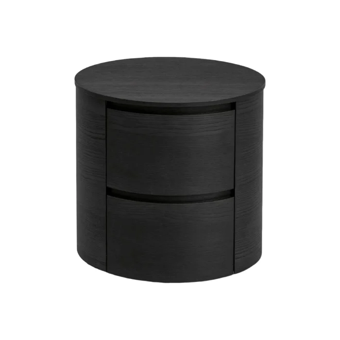 Features: - Solid wood - Handmade high quality workmanship - Durable and robust construction - Large storage space with two drawers - Modern and elegant design Dimensions: Diameter: 51cm Height: 50cm