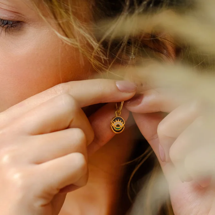 The hoop earrings are 18k gold plated on 925 sterling silver.