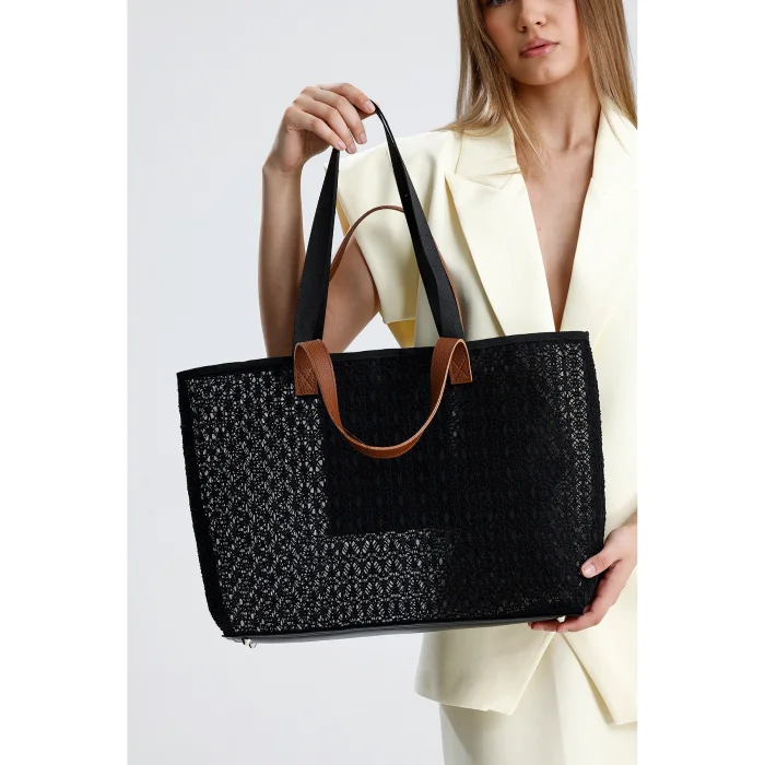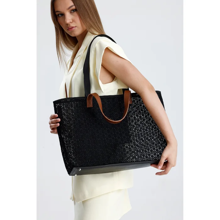 Product: Women's Large Lace Patterned Beach And Shopping Shopper Tote Shoulder Bag
