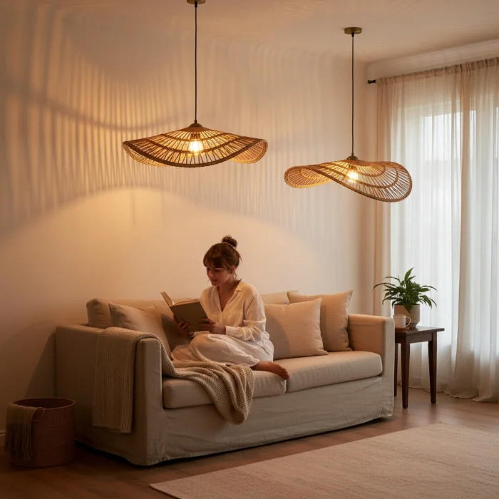 Thanks to its stylish design, it creates an aesthetic atmosphere in different spaces such as living rooms, dining rooms, bedrooms, entrances and cafes. The rattan weave structure provides a natural distribution of light into the space, creating a warm and peaceful ambiance.