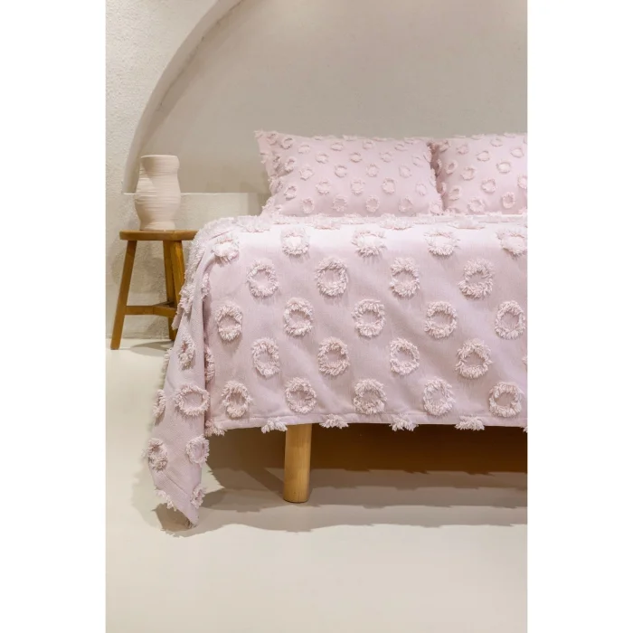 Sitra Powder Double Tassel Bedspread 230x250 2 Pillows 50x70 5032 This carefully crafted bedspread provides ample coverage with a generous size of 230x250 cm. The product set includes two 50x70 cm pillowcases. The elegant powder color adds calmness and elegance to your room. Thanks to its high-quality cotton content, it offers a soft and comfortable feeling. A bedspread effortlessly transforms your bedroom into a haven of tranquility, combining both comfort and aesthetics. Ideal for those looking for a tidy and stylish bedroom, the bedspread provides a polished and harmonious look. The circular tassel details on it reflect an original boho style and add a unique atmosphere to your room. The Sitra Double Tufted Bedspread is the perfect way to organize your bedroom and add a touch of style. Care Recommendation It is recommended to wash at 30 degrees. Bleaching should not be done. It does not require ironing. Lay-out drying is recommended. Dry cleaning should not be applied. Note: Actual colors may differ depending on lighting and monitor settings.
