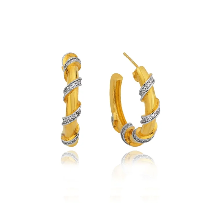 925 Sterling Silver 22K Gold Plated Stone Colors: White, Black Earring Gram: 9,83gr