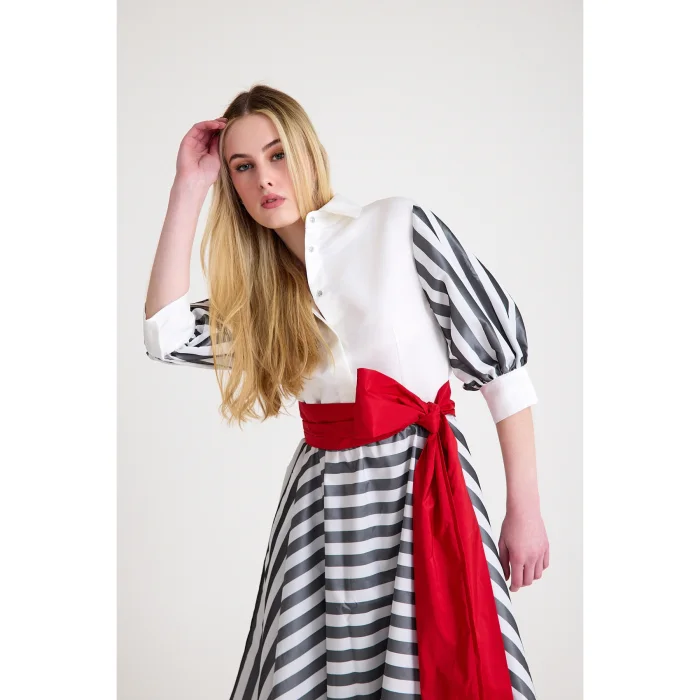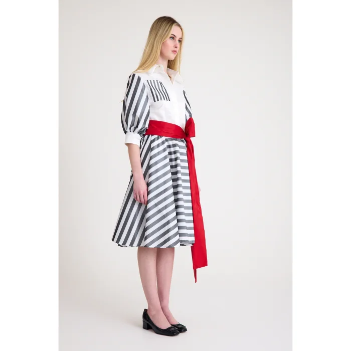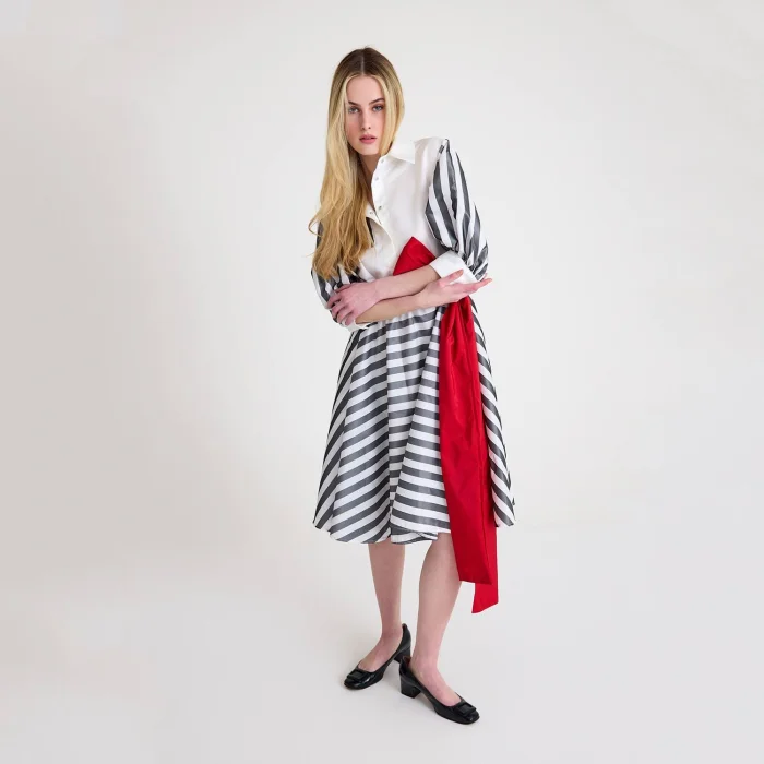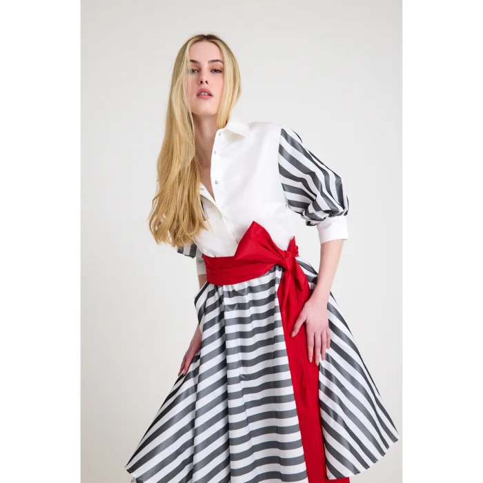 Product: Midi Shirt Dress With American Satin Detail On The Shirt Part