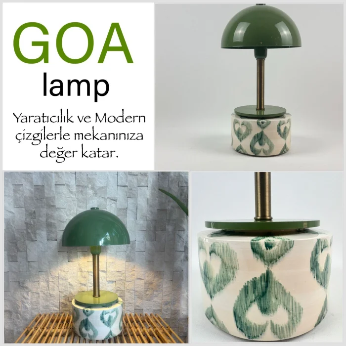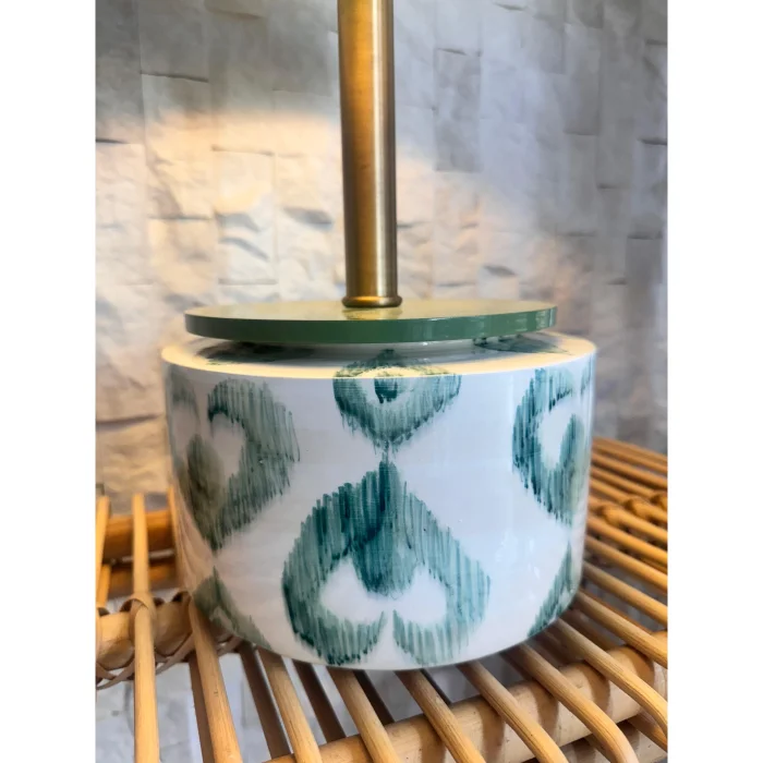 Product Dimensions: Width: 35 cm Height: 45 cm Materials: Body: Ceramic Head: Brass Coating E-27 Lampholder There is a 2 meter on/off switch plug cable on the product.
