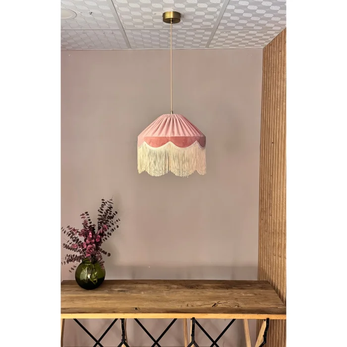 We prepare the Sofia fabric chandelier, one of our iconic models, in vintage style, with luxury velvet fabric and beige tassels in a limited edition.