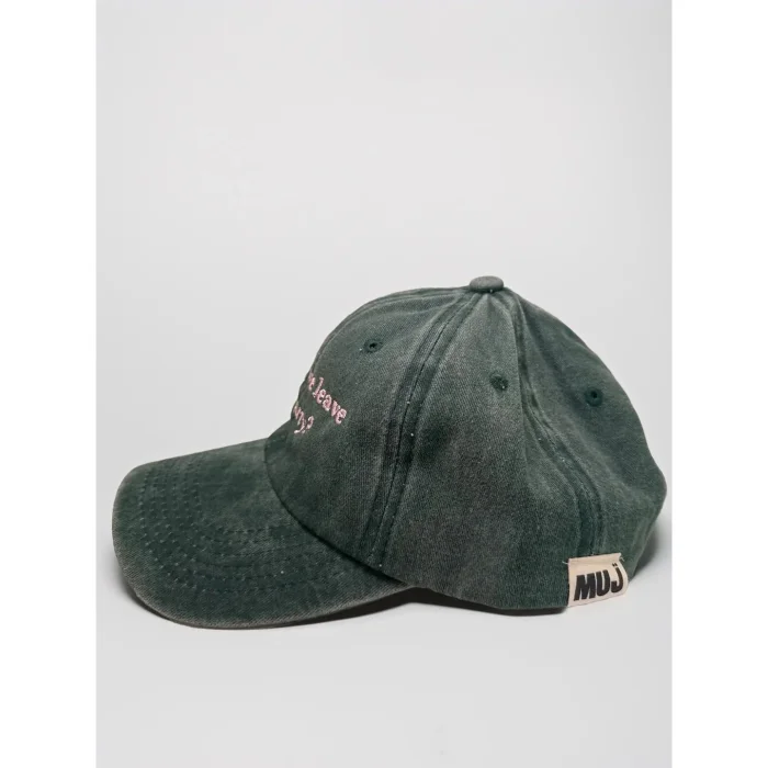 "should we leave this party?" embroidered cap. one size. size can be adjusted with the clasp at the back. made of cotton fabric.