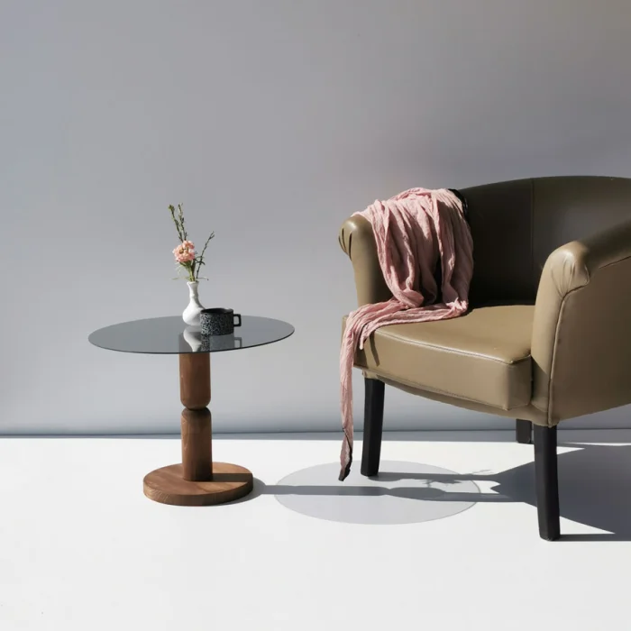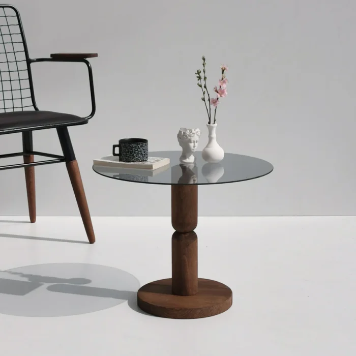 Fume colored tempered glass is used. Tempered glass is more durable and safer than regular glass.