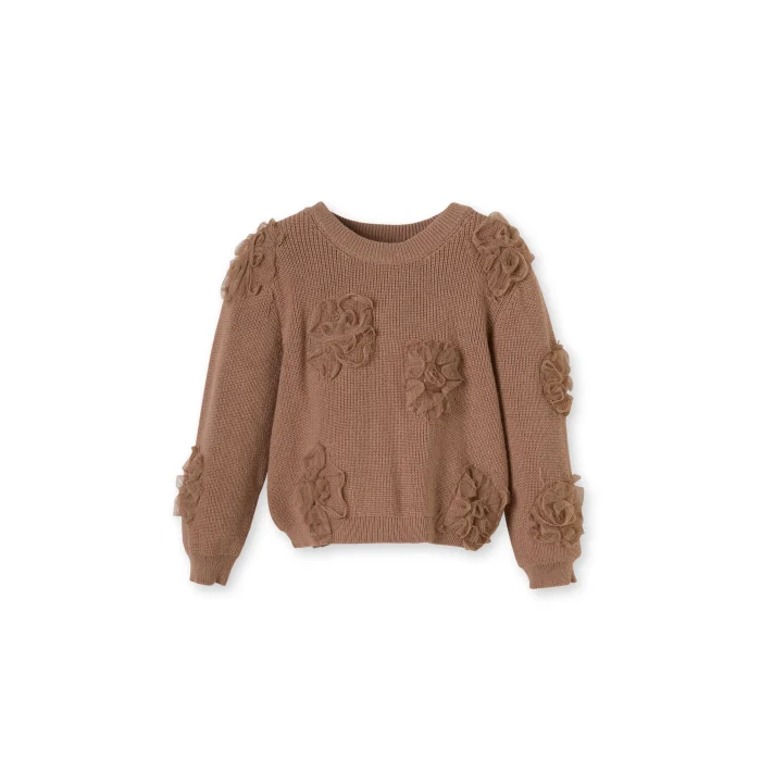 Product: Brown Organic Cotton Floral Detail Knitted Girl Sweater