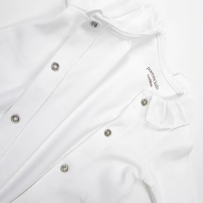 The baby suit is made of wonderfully soft jersey and has a closure at the front, so that you can easily change the baby.