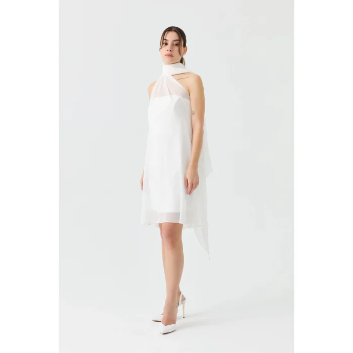 Product: No38 Tek Omuz Şifon Beyaz Mini Elbise
