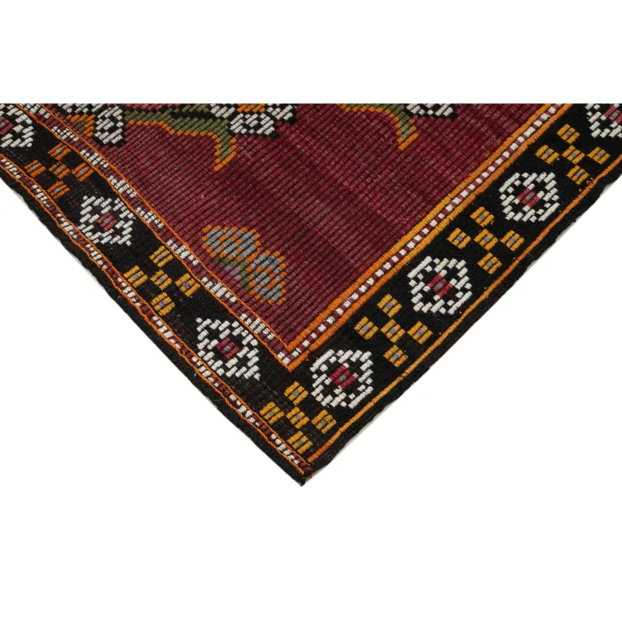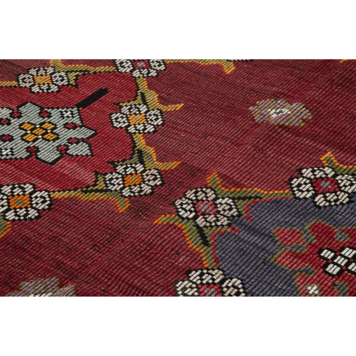Vintage Cecim kilims are on 223 cm width and 326 cm length and the pile height is 5mm, the approximate weight of the rug is 15 kg. It’s % 100 handknotted wool and goat hair rug. It’s made from the natural dye.