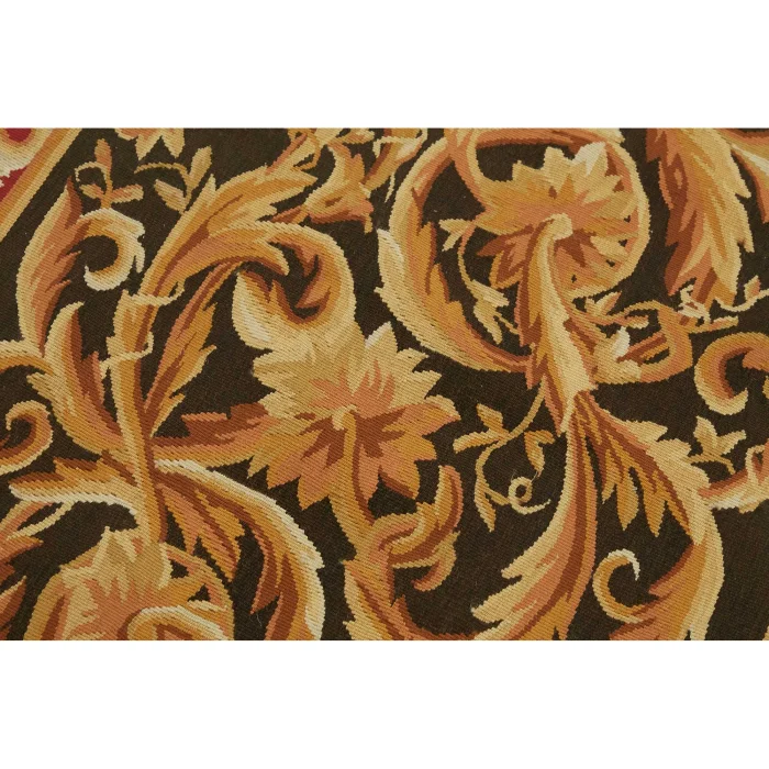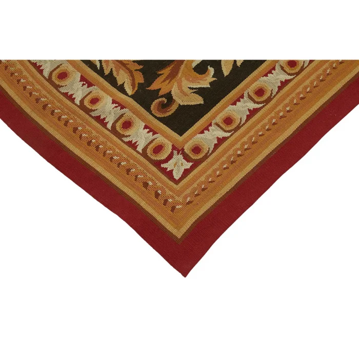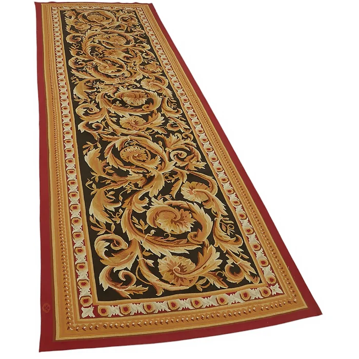 The Aubusson Rug is 90 cm wide by 300 cm long and about 5 mm thick. It weighs an average of 3 kg. It is made with hand-spun wool and cotton. It takes its colors from root dyes obtained naturally.