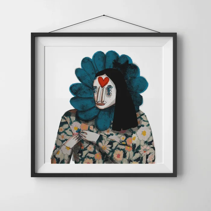 Drawings made with markers, dry and watercolors, then printed in giclée quality on 210g matte Hahnemühle enhanced paper. This technique; Art printing can capture 98% of the original colors, and these colors are preserved for about 200 years in a healthy way. *Will be sent by roll without frame. *Print size is 33x33. *Frame allowances are given extra. *Not dimensioned