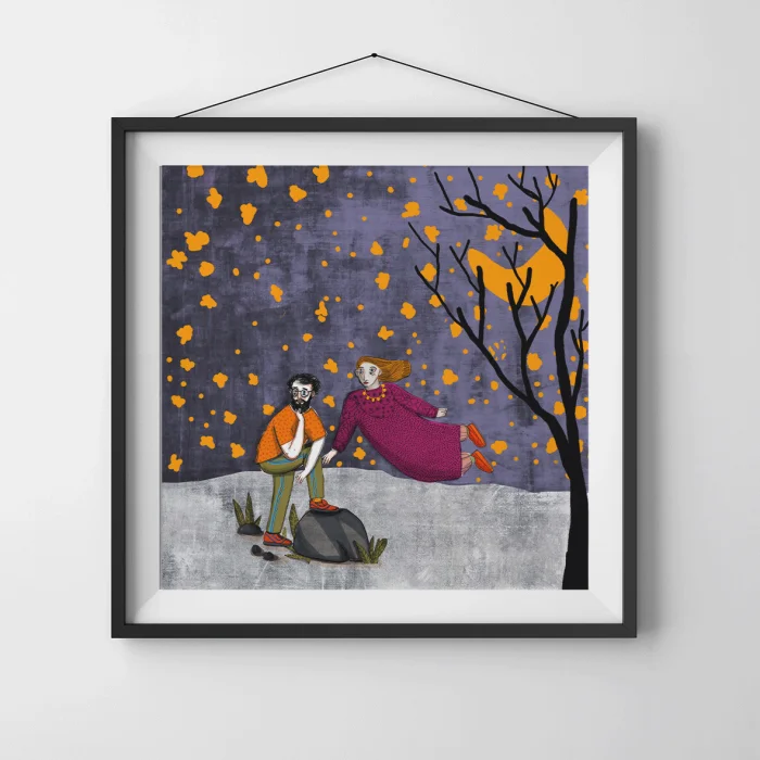 Drawings made with markers, dry and watercolors, then printed in giclée quality on 210g matte Hahnemühle enhanced paper. This technique; Art printing can capture 98% of the original colors, and these colors are preserved for about 200 years in a healthy way. *Will be sent by roll without frame. *Print size is 25x25. *Frame allowances are given extra. *Not dimensioned