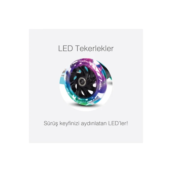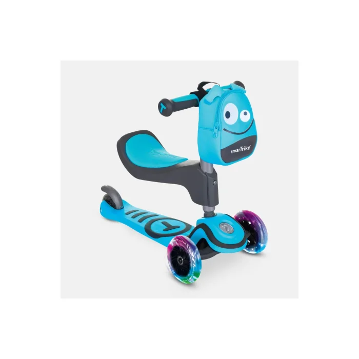 SmarTrike T1 3-in-1 Kids Scooter with Seat and Bag (15 Months - 5 Years)For your child's first and most comfortable scooter experience SmarTrike T1!Suitable for children from 15 months to 5 years old, the T1 has 3 adaptive stages that allow your child to safely explore and enjoy autonomous riding. Our Swiss-designed T1 Scooter is equipped with numerous features such as a child seat, TPR rubber foot rest, hand grips and rear brake; All of these features provide a smooth and safe driving experience. Salient Features3 Products in 1: Suitable for children from 15 Months to 5 Years old. It's a versatile product that can be adjusted to your child's growth stages and meets their changing needs. 15 months-2 Years Sitting mode, 2-3 Years Practice mode, 3-5 Years Freestyle modePadded EVA Foam Seat: Ideal for our beginner little drivers. It provides a soft and comfortable seating area, making your child's riding experience safer and more comfortable. Soft Touch Rubber Handle Handle: Offers a comfortable grip and provides comfort in long-term use. It also prevents perspiration and guarantees a non-slip grip. Telescopic Aluminum Steering: The steering wheel can be adjusted according to your child's height and preference. Its aluminum structure offers both light and durable use. LED Wheels: Wheels that will light up on the go, which our children will like. It increases visibility, both in terms of fun and safety. TPR Rubber Foot Support: It offers a safe driving experience with its non-slip and durable structure. TPR rubber is flexible and long-lasting. Cute Storage Bag: An ideal solution for carrying your child's toys, snacks and other belongings. It is designed in a convenient and practical way. Technical SpecificationsProduct Dimensions: 55.5 x 26.5 x 46 cmWeight: 2.8 kgBox Dimensions: 55.5 x 14.5 x 28.5 cmBox Weight: 3.8 kgColor OptionsBlue (Blue), Pink (Pink)SmarTrike T1 3-in-1 Children's Scooter with Seat and Bag is the perfect product that allows our children to have fun and develop their riding skills safely. Every detail has been designed with the comfort and safety of our children in mind, and this scooter can be used for years to come, adapting to their growth stages. Whether at home or in the park, the SmarTrike T1 will help your child explore the world and give them moments of enjoyment. A new adventure begins in the step with the SmarTrike T1, which is both a safe and fun companion for our little explorers!