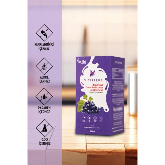 Resveratrol in the content of Vitisfera Resveratrol Shot Forest Fruits Flavored Food Supplement is obtained from Veri-Te®, Switzerland's registered and patented trans-Resveratrol brand, while Quercetin is obtained from Sophorae Japonica plant with 95% purity and Grape Seed Extract is obtained from natural grape seed with 96% purity.