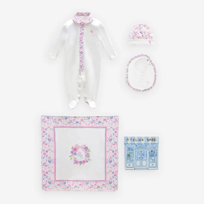 The set content is as follows; Overalls (0-3 months) Muslin Cover (70x70 cm) Newborn Hat Newborn Gown Product features: Material: 100% Cotton Fabric Type: Interlock Paint: GOTS Certified Paint