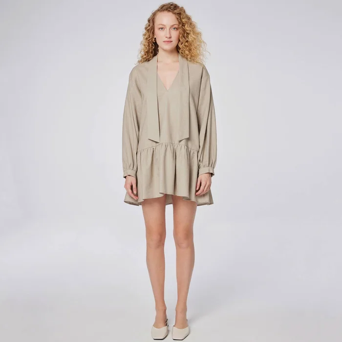 A refined yet effortless mini dress that blends feminine sophistication with relaxed ease, perfect for day-to-evening transitions.