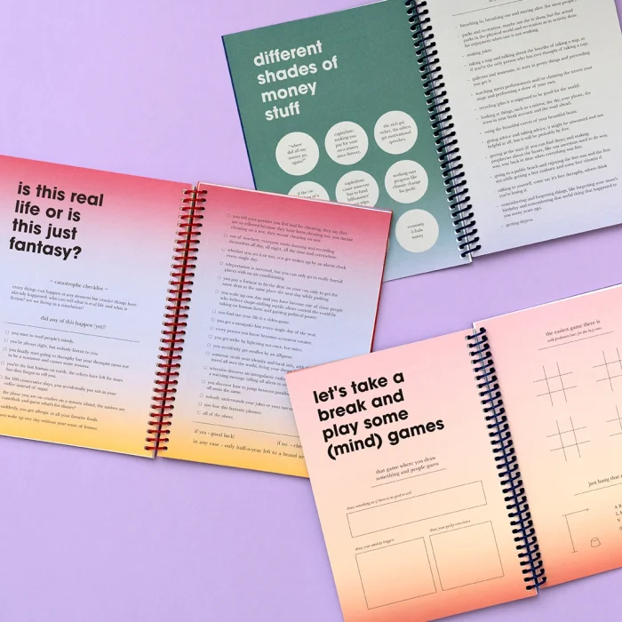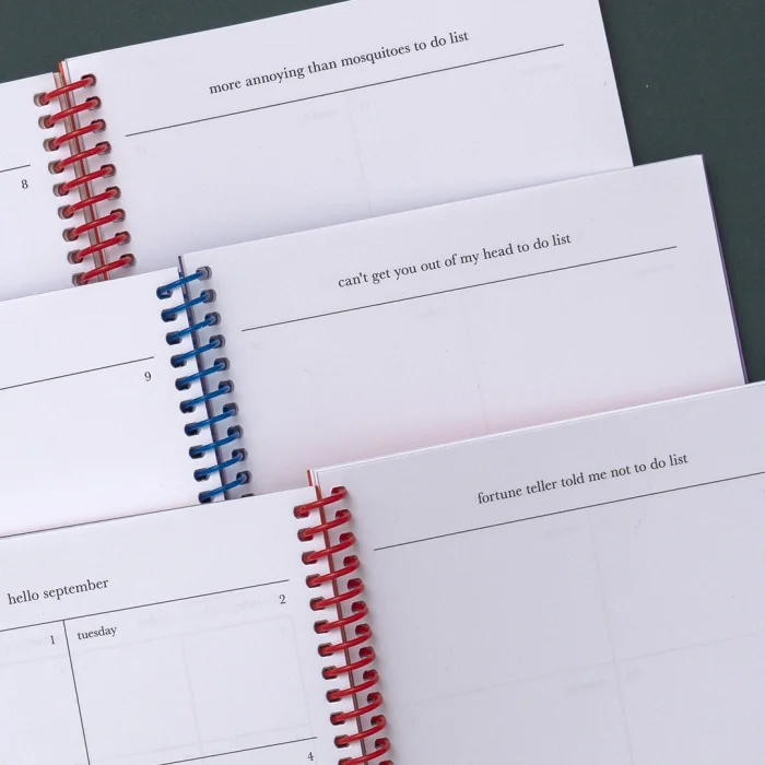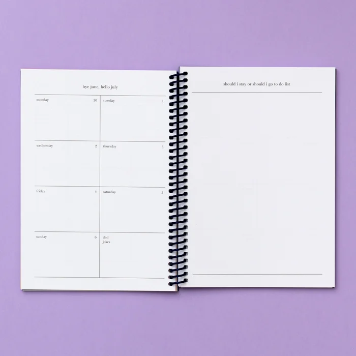 Here We Go Again is a little sarcastic, a little funny, an agenda with both monthly and weekly planning pages. It's a game, it's sarcastic writing, you can find fun content on every page. (It is especially recommended to study the colored pages.) * A5 size (14.8x21 cm) * 160 pages * Cover: Hologram foil application on 300 gr grey paper * Inner Pages: 110 gr. white paper * Monthly scheduling pages * Weekly planning sheets * Note pages * Fun some pages * Contents are in English.