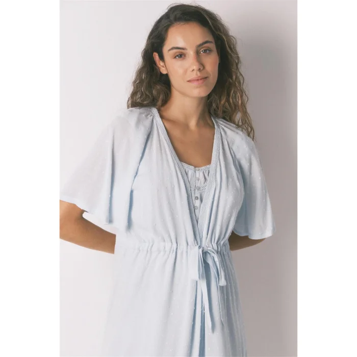 Offering comfort all day long with its light and flowing viscose texture, this short-sleeved maternity dressing gown provides ideal use in hot weather thanks to its spacious structure. Its long cut supports both elegance and comfortable movement. It is a pleasant and convenient option for expectant mothers who prioritize comfort at home.