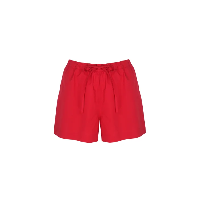 Wide-fitting shorts with laces. It is made of lightweight cotton poplin fabric with 3% elastane for extra comfort. 97% BCI Cotton, 3% EA.