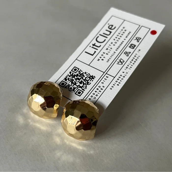 The nail of the earring that enters the ear is steel, and the rest of the form is brass and rhodium-plated.
