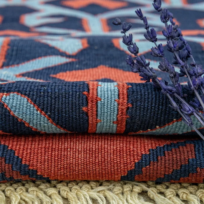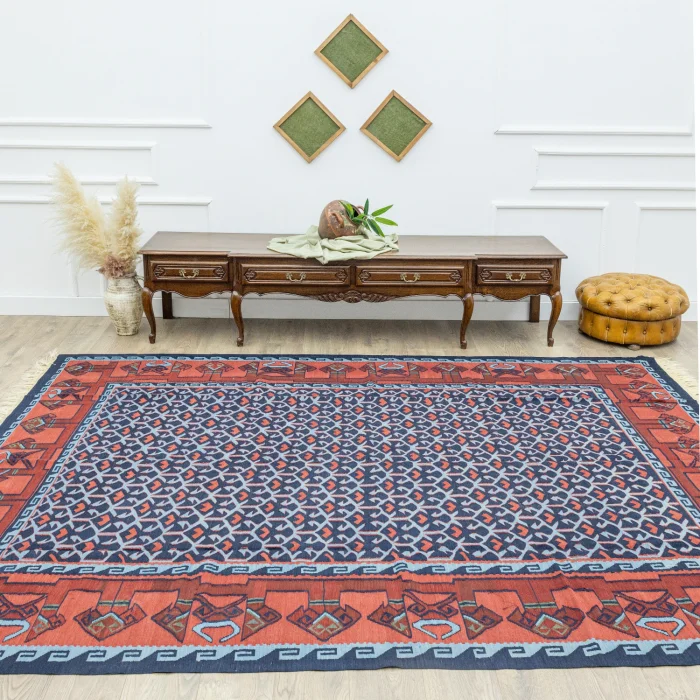 We are here with Soho Antiq traditional and modern rug models that will make a difference to your life! Specially designed to adapt to all kinds of spaces, this rug model is produced using unique hand weaving techniques and consists entirely of natural wool. In the coloring of hand-woven rugs, chemical-free natural root dyes are used. This is just one of its many features that make it special. The base color of the rug model is blue, and the other side colors are red and multicolored. Thanks to these harmonious colors, you meet with an aesthetic rug.