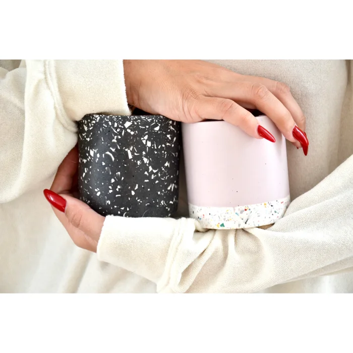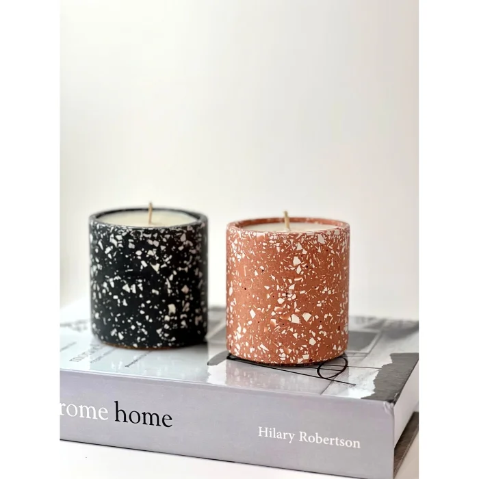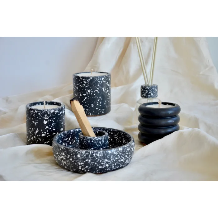 SOLILU candles consist of natural Soy Wax and cotton wick. Candle jars are made from Jesmonite AC100 which is eco-friendly and a water-based composite material. Jesmonite material is safe to use and contains no solvents or VOCs.