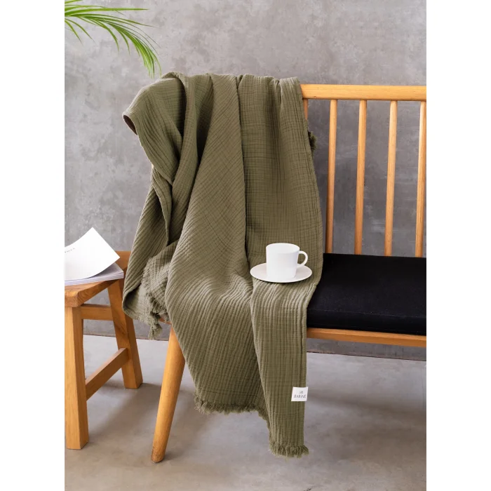 Cocoon Sofa Shawl offers comfort and elegance together with its 100% cotton texture. Its soft texture envelops you with every touch, soothing you. While its special design with burlap effect creates a modern aesthetic, it harmonizes with different decoration styles thanks to its double-sided usable feature. This shawl, which you can use both in your living room and in the bedroom, offers an elegant and functional option in every respect. It adds value to your living spaces not only visually, but also with the warmth and comfort it offers.