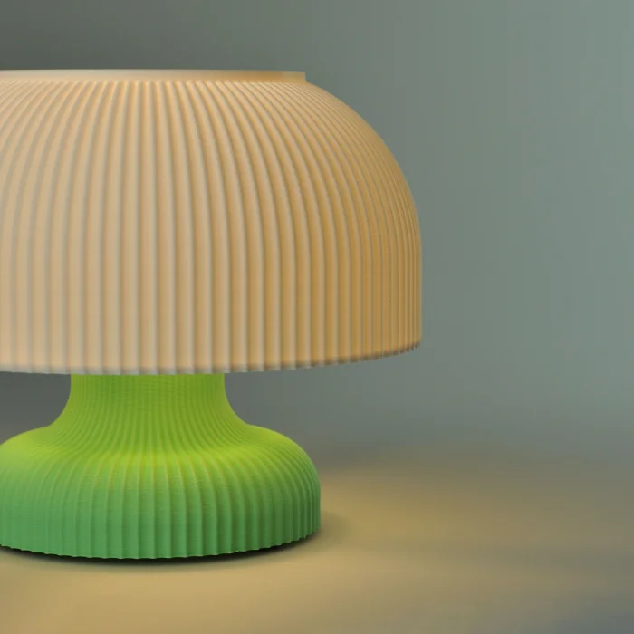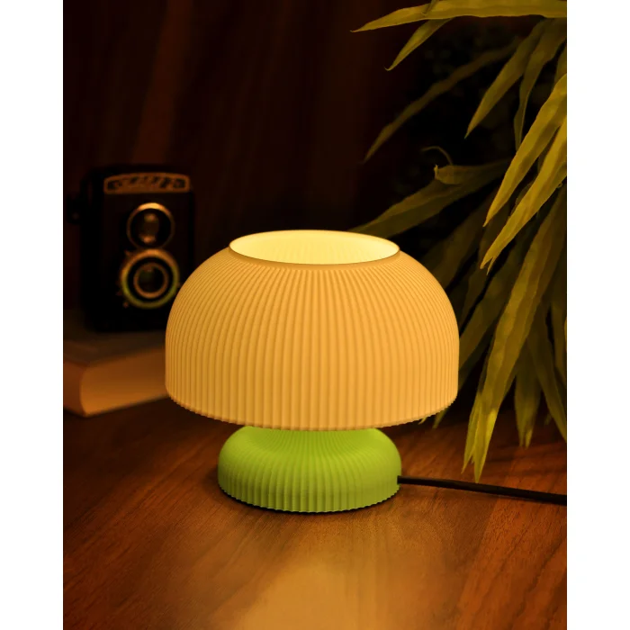 The Mushroom Lamp is a 3D printed product that has a very small and sweet look to it! It would be best used in a kitchen or as bedside table lamps to add nuance to a space. The Mushroom Lamp emits a warm, diffused glow, combining timeless design with contemporary durability to create a serene and inviting ambiance.