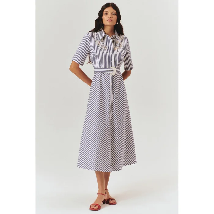 Product: Embroidered Detailed Belted Striped A-line Shirt Dress