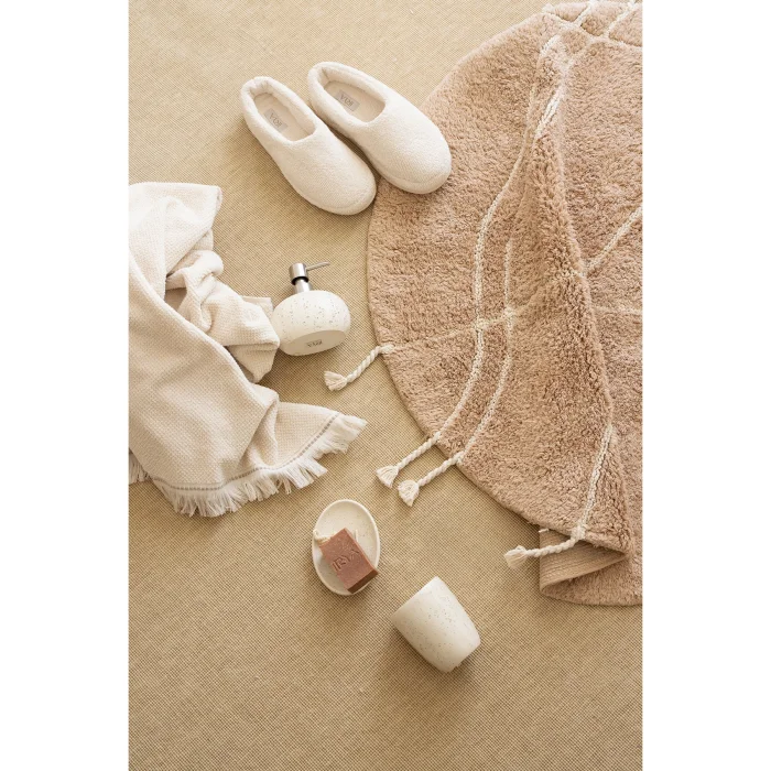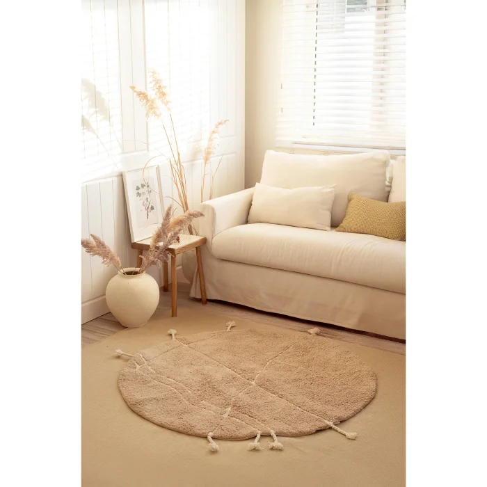 Handmade, Each One Special for You: Each flat mat is carefully prepared by hand; Although produced by the same methods, each has its own character with slight differences; That's why each mat offers a unique touch that's unique to you; Unique Tassel Detail: Handmade tassels on the edges of the mat add movement and elegance to the design.; Each tassel adds a characteristic touch to the mat, making it out of the ordinary and giving your bathroom a natural aesthetic; 100% Pure Cotton: Made with 100% cotton yarns, one of the purest materials from nature; It offers long-lasting use with its natural softness and solid structure.; It creates both comfort and a feeling of naturalness in your bathroom.; Natural Absorbency: Cotton structure absorbs water quickly, dries in a short time; Thanks to its breathable texture, it prevents the accumulation of wetness and gives your bathroom a hygienic and dry floor; Natural Softness with Every Step: The softness of cotton, which comes from nature, offers a comfortable contact with your feet with every step.; It is ideal for those who want to start the day with peace or wrap up the day with a soft touch.